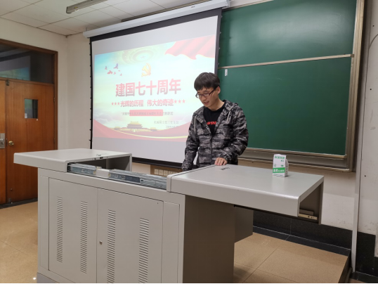 研究生之窗训(记者 张勇 摄影报道)2019年10月25日下午7时,机械学院硕士第三党支部于逸夫馆4420开展“建国七十周年—光辉的历程 伟大的奇迹”主题党日活动,本次活动由机械硕士第三党支部书记卢昌宏同志主持。