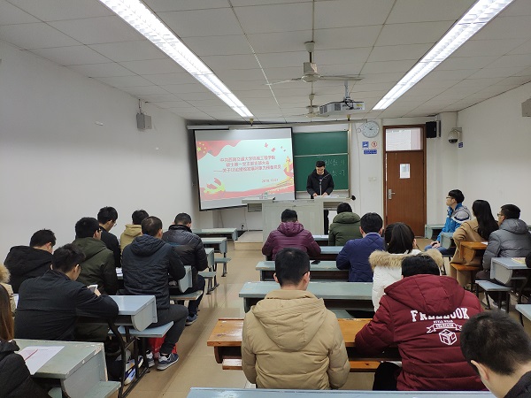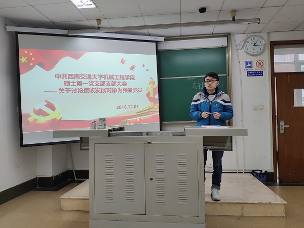 2018年12月1日下午3时,中共威尼斯7798cc威尼斯7798cc硕士第一党支部在我校九里校区逸夫楼4305A室召开支部大会,讨论接收郭美玲、胡勇两名发展对象为预备党员。会议由党支部书记谢齐同志主持,支部党员、发展对象和入党积极分子按时出席此次会议。