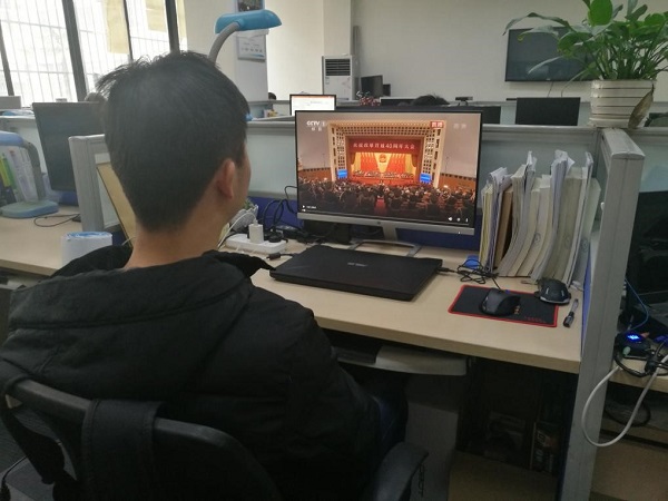 2018年12月18日,中共中央、国务院组织隆重庆祝改革开放40周年大会在北京人民大会堂隆重召开。威尼斯7798cc威尼斯7798cc硕士第二党支部组织支部成员分散观看庆祝大会直播,认真学习了习近平总书记的重要讲话。