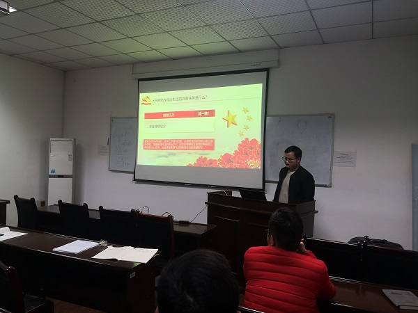 随后,17级博士班党支部书记崔文同志以自身做科研为例展开讲解。他讲到,一切从实际出发就好比做科研要保证实验数据真实性,不能弄虚作假。理论联系实际,实事求是,就好比理论的实验模型不一定适用于自己的研究,需要与自己的科研情况联系起来。在实践中检验真理和发展真理,就好比根据自己的试验结果修正理论模型,并拓展其应用领域。这些形象的比喻有助于我们对党员应知应会知识的理解。最后其他四位党员干部也做了相关的陈述报告。