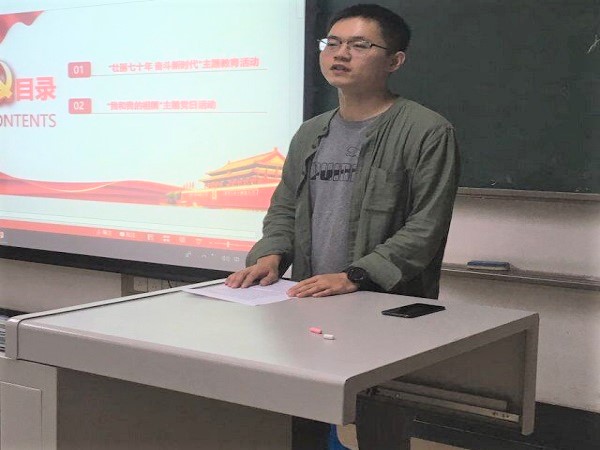研究生之窗讯(记者 梁豪 摄影报道)9月17日晚7时,中共威尼斯7798cc威尼斯7798cc硕士第八党支部在4号教学楼4520教室开展“壮丽七十年奋斗新时代”主题教育活动和“我和我的祖国”主题党日活动。会议由威尼斯7798cc硕士第八党支部支部书记屈国琛同志主持。所有党员参加会议。