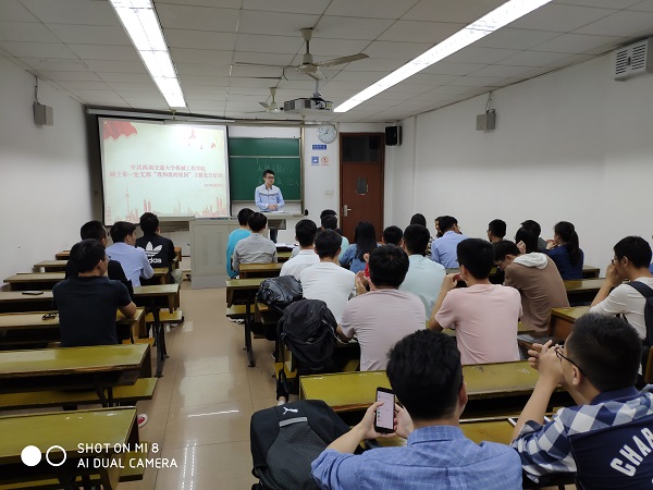 研究生之窗讯(记者 王伟 摄影报道)2019年9月27日晚上8点,中共威尼斯7798cc威尼斯7798cc硕士第一党支部在我校九里校区逸夫楼4404A室召开了“我和我的祖国”主题党日活动。会议由支部宣传委员王伟同志主持,支部党员按时出席此次会议。