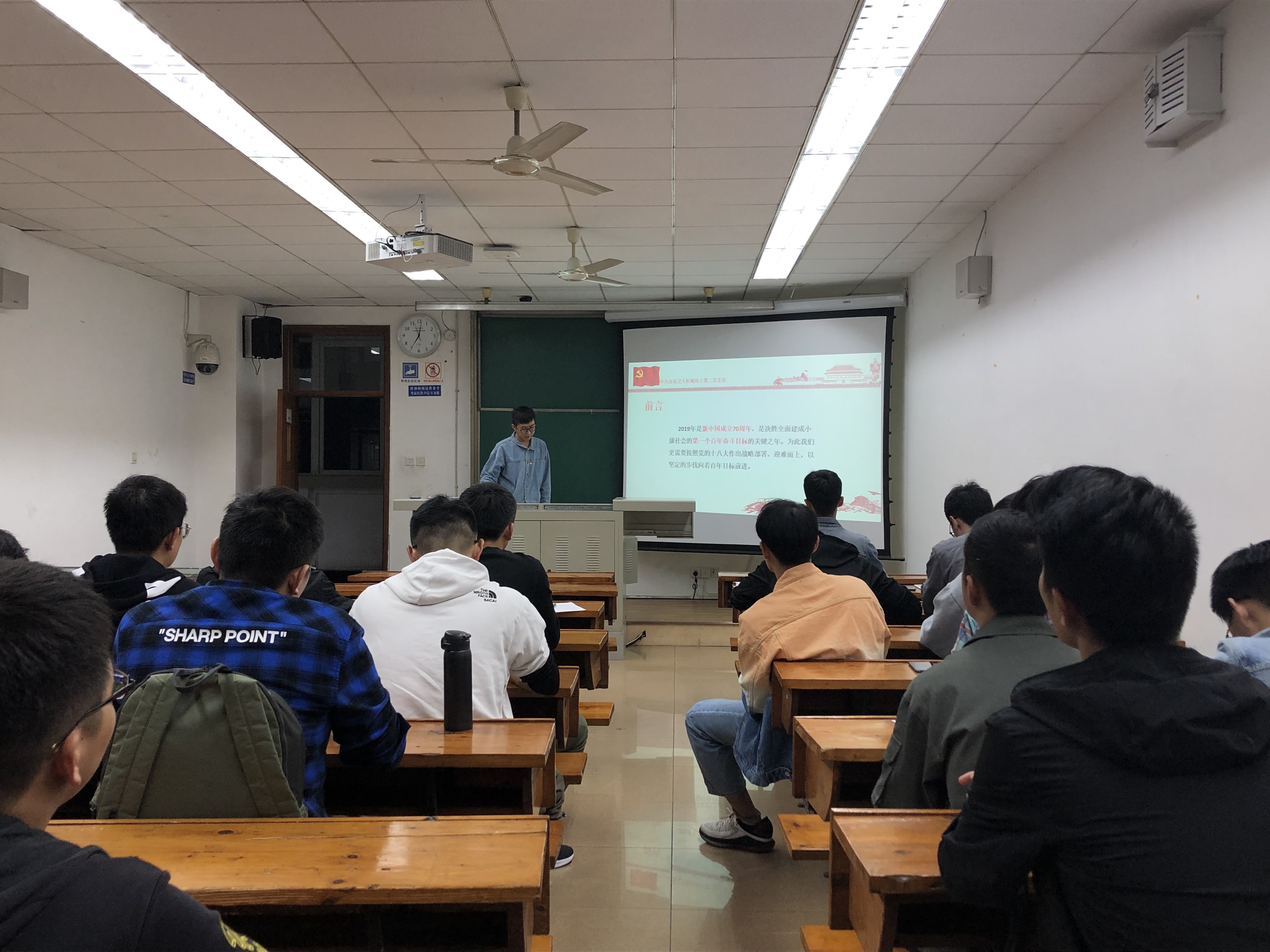 会后,全体党员进行了激烈的讨论并发表了自己的感言。谢迟新说:“回顾中国七十年的发展历程,巨大的进步令人惊叹,这是前人努力拼搏才有了我们现在的幸福,身为学生,必须刻苦学习,将来也为我国建设出一份力。”。