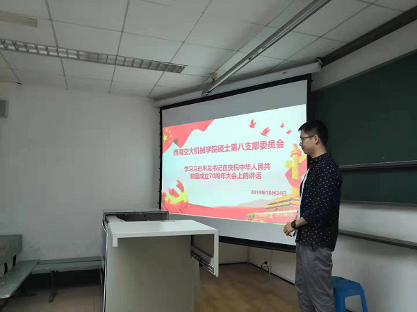 【机械党建】威尼斯7798cc硕士第八党支部开展学习“习近平总书记在庆祝中华人民共和国成立70周年大会上的讲话”主题教育活动